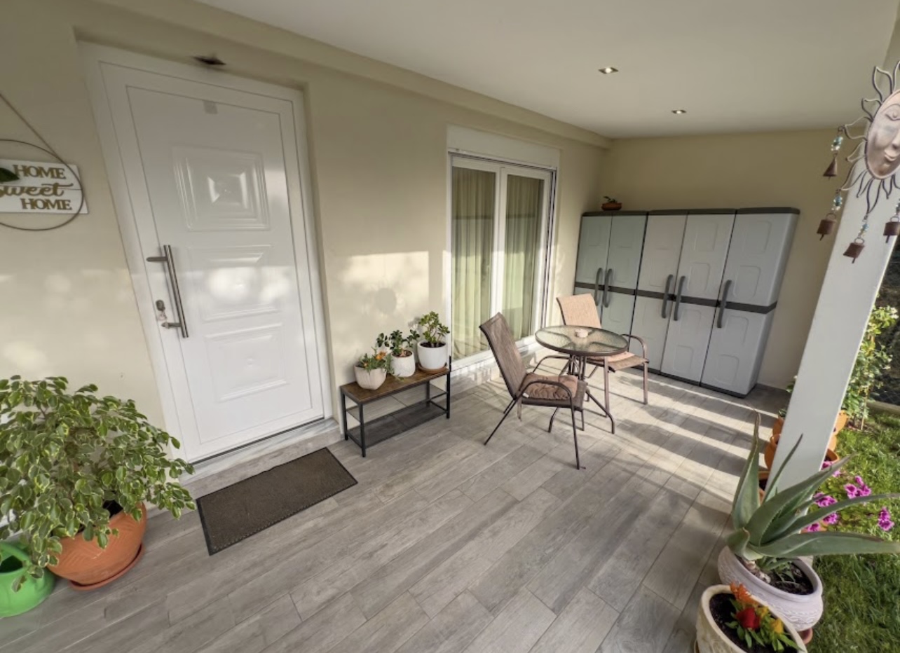 Zona exterioară a proprietății este amenajată pentru relaxare și socializare. Veranda frontală oferă spațiu pentru servirea cafelei sau momente de odihnă. Veranda din spate include grătar și zonă de luat masa pentru 6–8 persoane. Acest spațiu este potrivit pentru mese în aer liber și întâlniri cu familia. Atmosfera exterioară completează experiența de cazare într-un mod armonios.