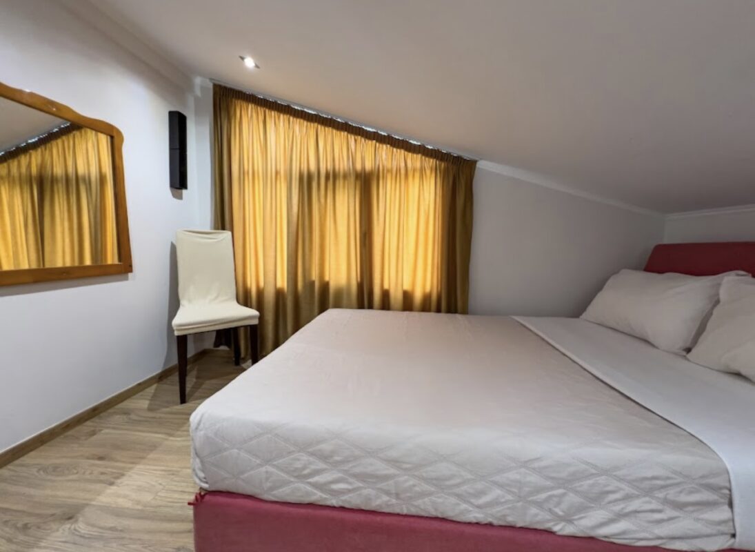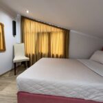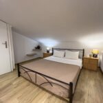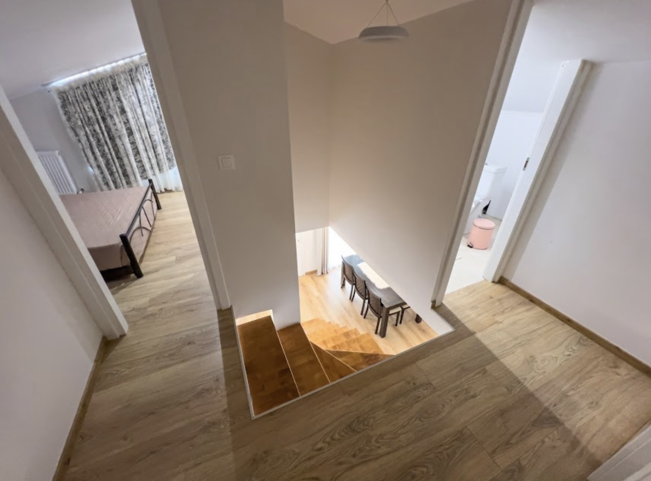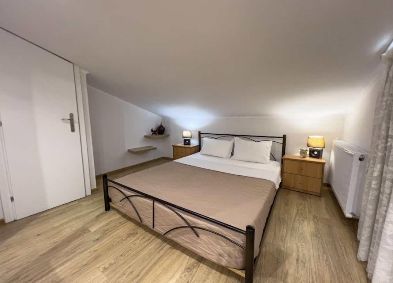 La etaj sunt amplasate trei dormitoare, dintre care două sunt dotate cu paturi duble. Al treilea dormitor dispune de un pat single, cu posibilitatea adăugării unui pat suplimentar pliabil. Capacitatea de cazare poate fi astfel extinsă în funcție de necesități. Există și o a doua baie, destinată confortului suplimentar al oaspeților. Fiecare dormitor beneficiază de aer condiționat pentru temperatură optimă în sezonul cald.