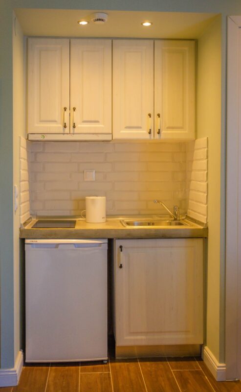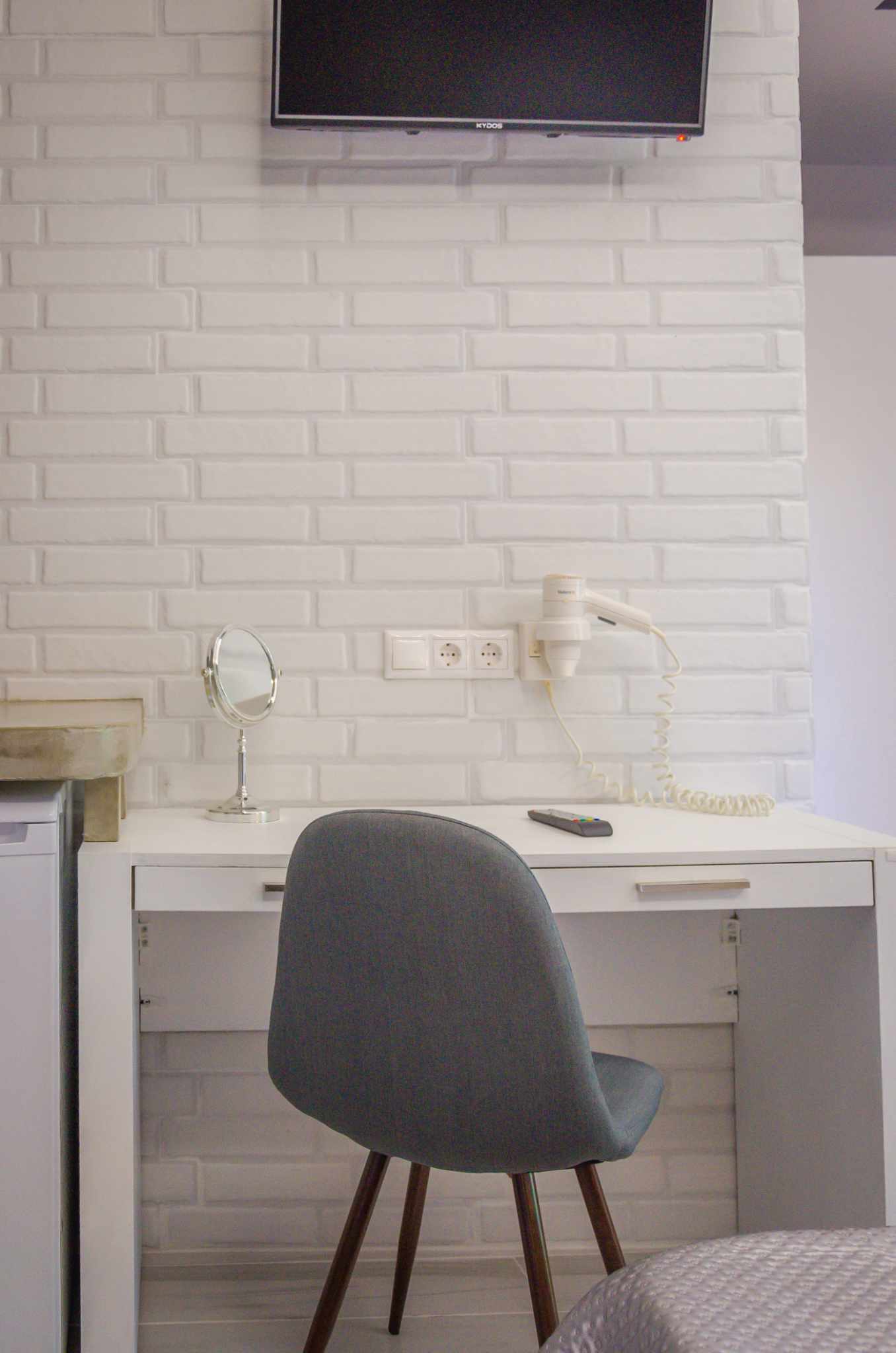 Studiourile duble confortabile (20m2) sunt dotate fie cu 2 paturi simple, fie cu 1 pat dublu, chicinetă complet echipată, ceainic, prăjitor de pâine, baie privată cu duș, uscător de păr, dulap, balcon, aer condiționat, wi-fi. Pătuț disponibil la cerere.