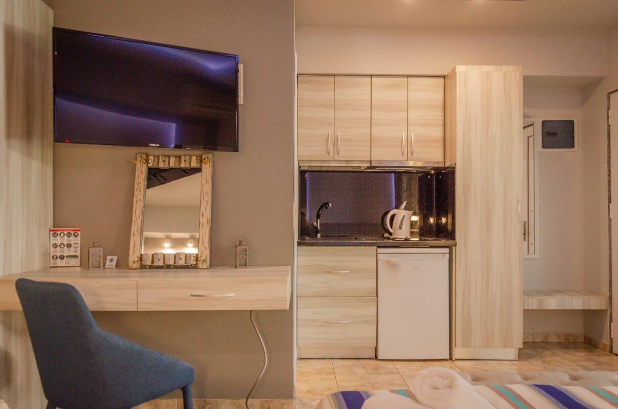 Studiourile de lux (26 m2) sunt dotate fie cu 1 pat dublu și cu un pat sau cu 3 paturi de o persoana, chicinetă complet utilată, ceainic, prăjitor de pâine, baie privată cu dus, uscător de păr, șifonier, balcon, aer condiționat, wi-fi. Pătuț disponibil la cerere.