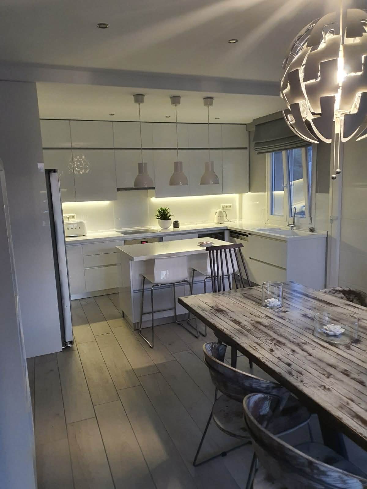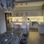 Spațiul interior este conceput pentru funcționalitate și confort sporit. Livingul primitor include un șemineu decorativ, perfect pentru seri relaxante. Zona de dining este integrată armonios în designul open-space. Bucătăria este complet utilată, cu mobilier încorporat modern. Această compartimentare optimizează experiența utilizatorilor și oferă eficiență în utilizare.