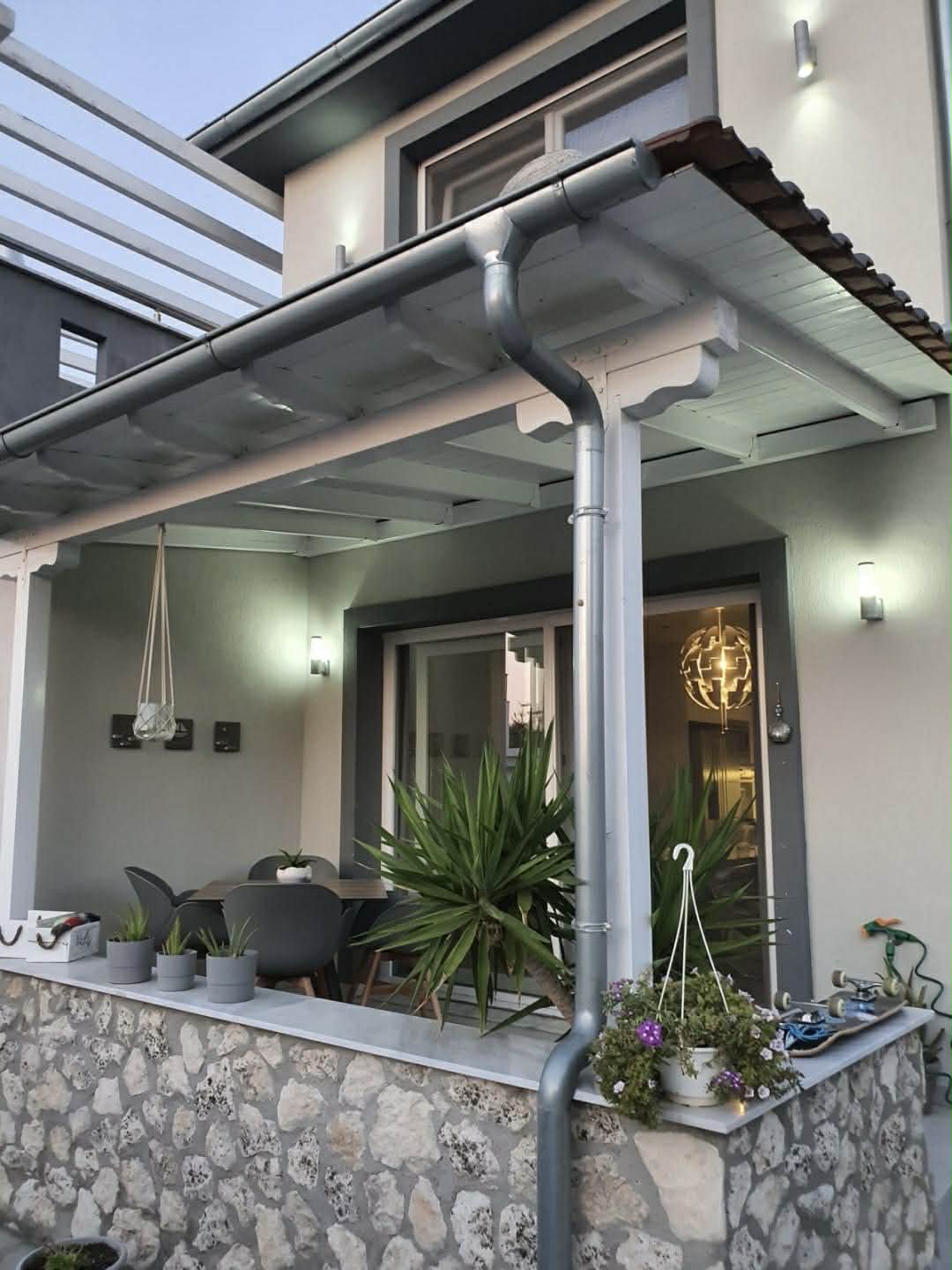 Exteriorul vilei oferă multiple opțiuni pentru relaxare și petrecerea timpului liber. Terasa spațioasă permite admirarea panoramelor către mare. Grădina privată este amenajată peisagistic și dispune de sistem automat de irigare. Ferestrele sunt protejate împotriva insectelor, asigurând confort suplimentar. Accesul facil către plaje multiple reprezintă un avantaj major pentru turiști.