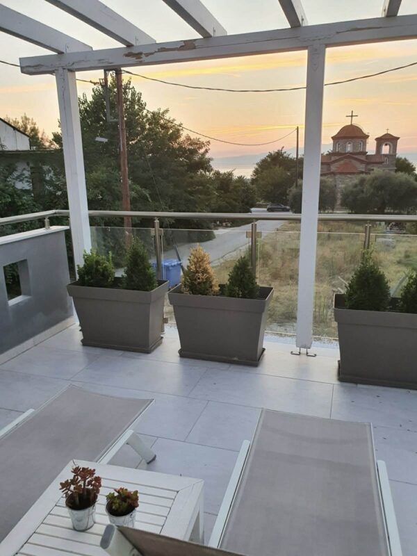 Villa Little John Thassos, vilă de vacanță elegantă, oferă vedere la mare, aproape de plajă, confort modern, grădină privată și facilități complete pentru sejur relaxant în Grecia.