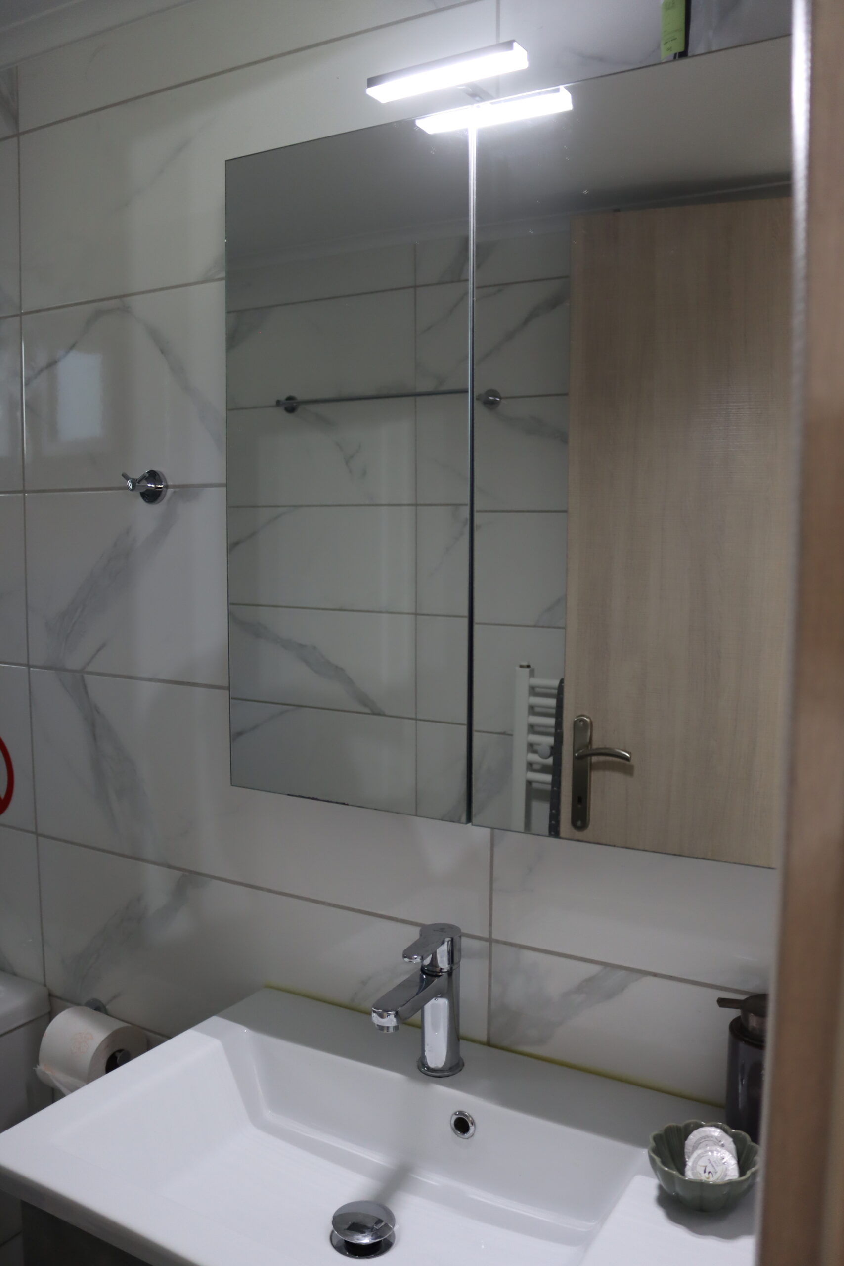 Două dormitoare au câte un pat dublu, iar cel de-al treilea dormitor are două paturi de o persoană.