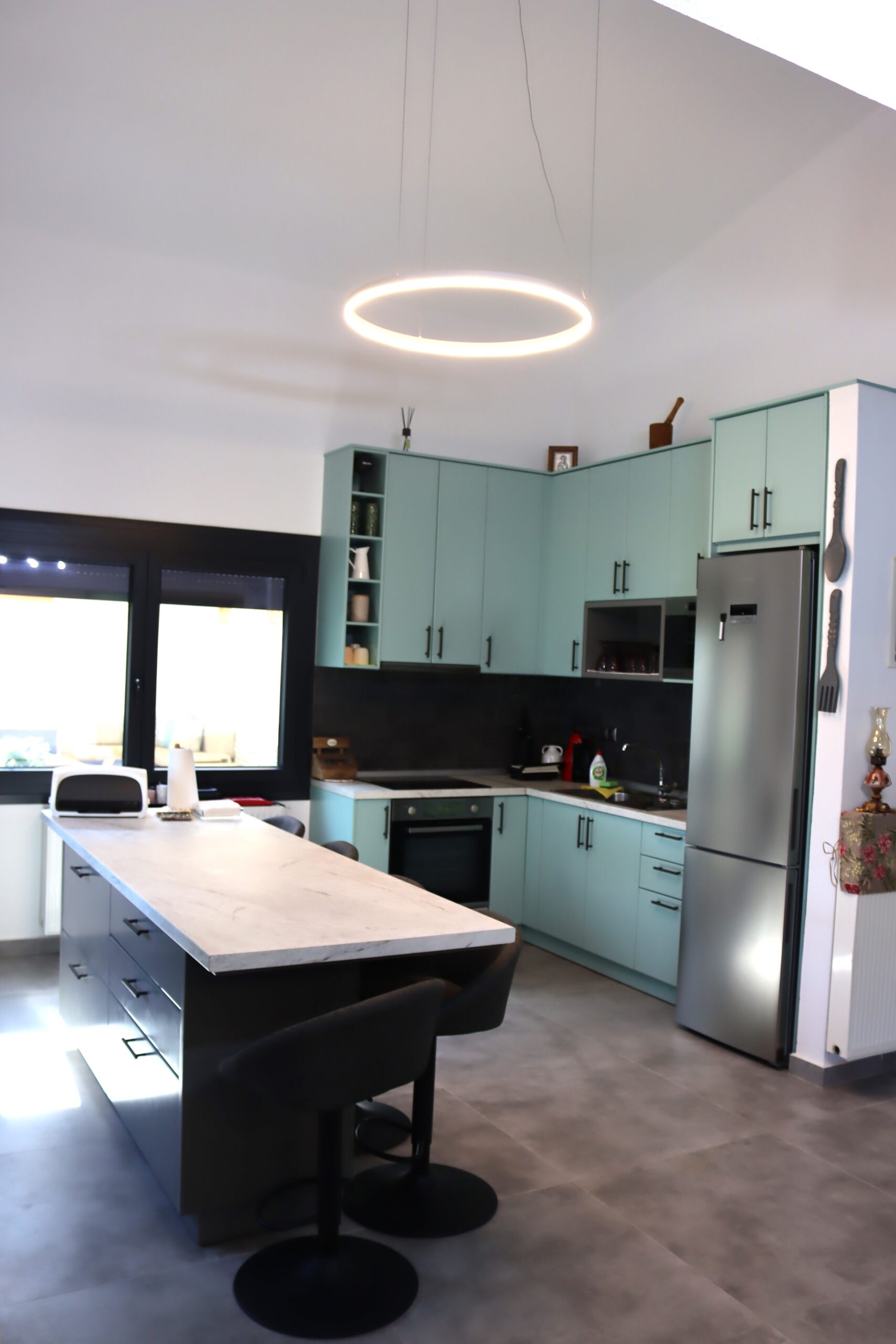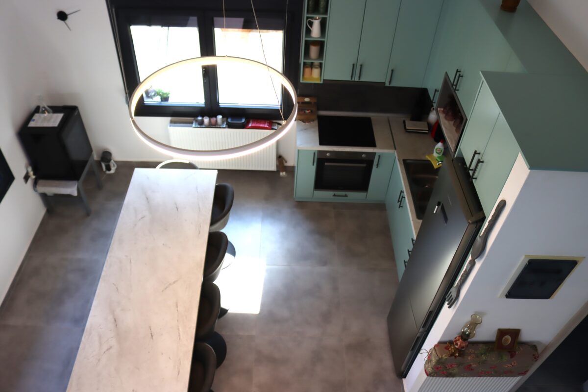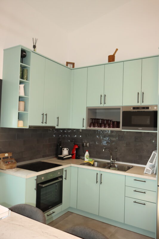 Bucătăria este complet utilată cu tot ce aveți nevoie. Există plită electrică, cuptor electric, cuptor cu microunde, cafetieră, frigider mare.