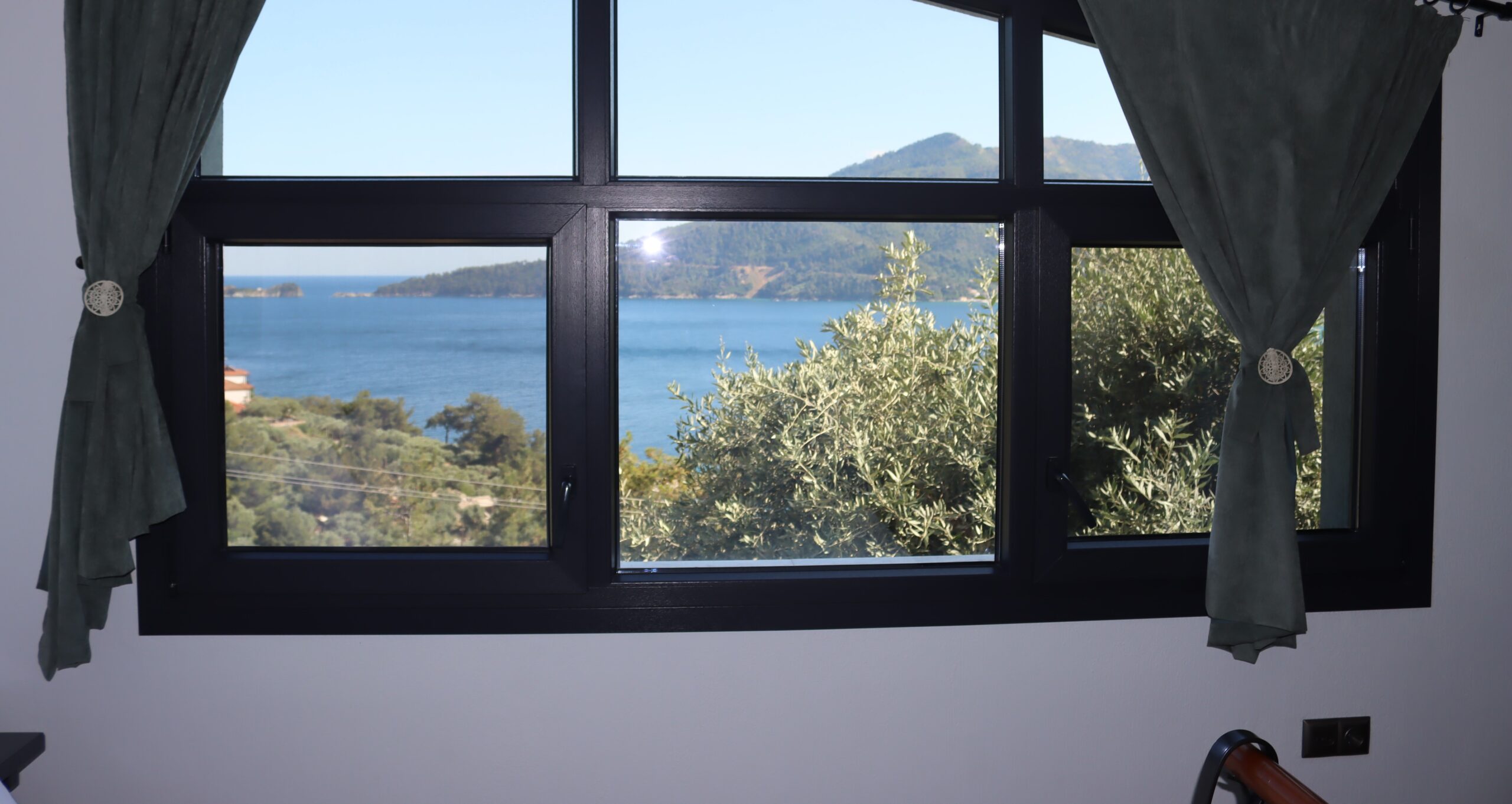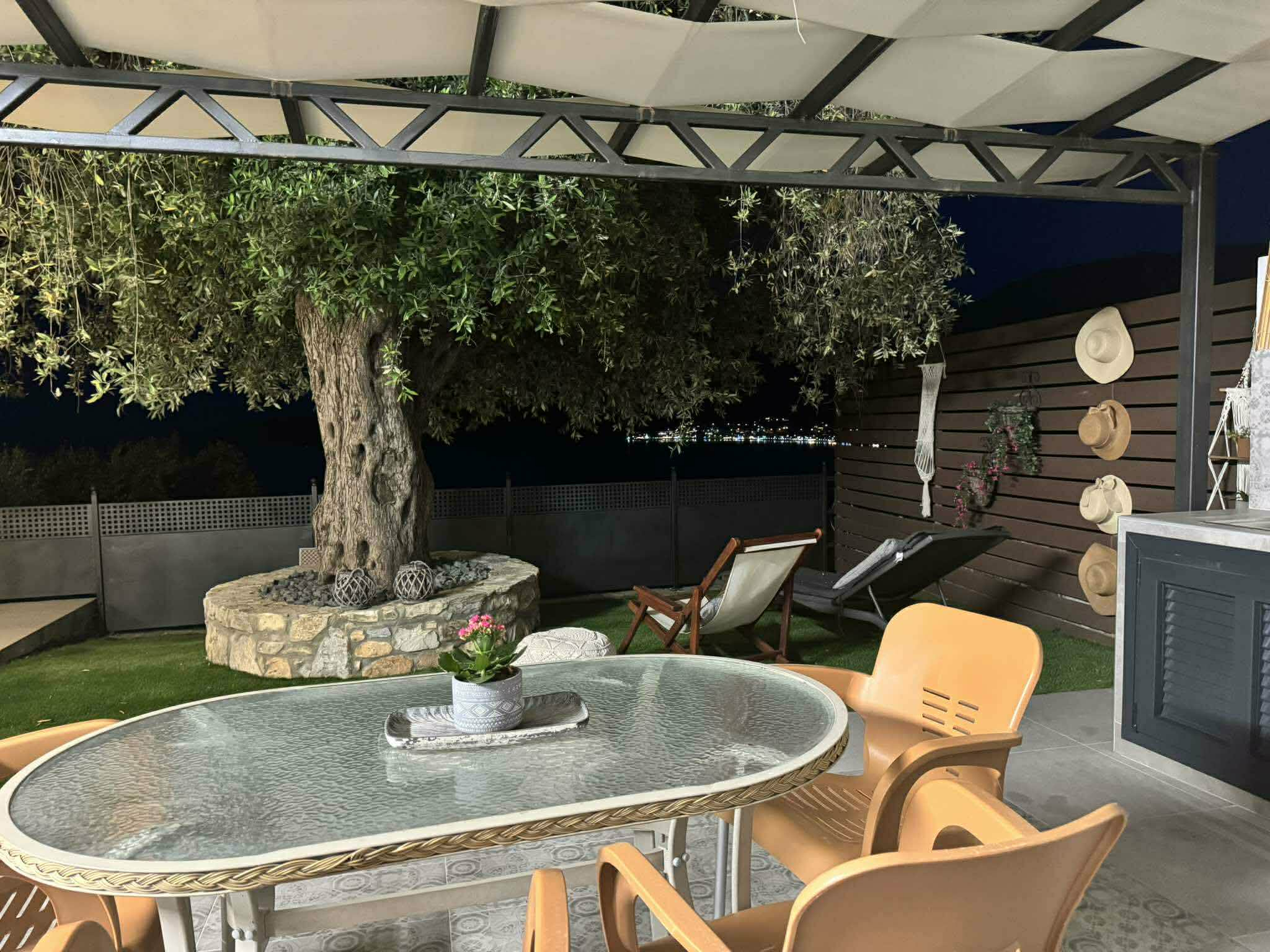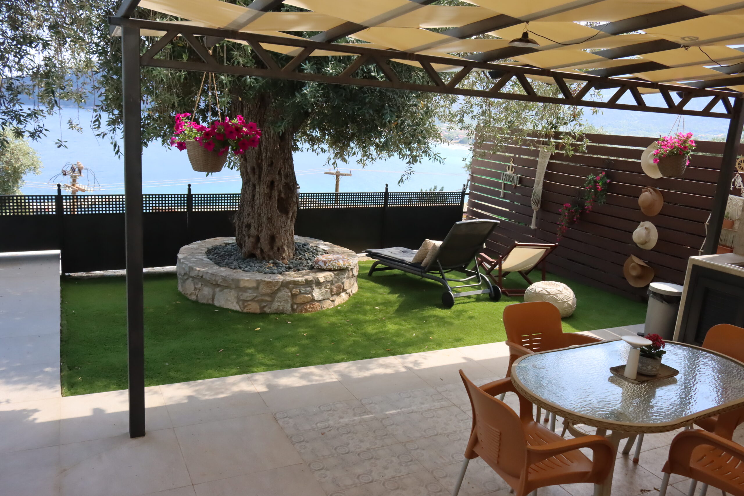În grădină aveți șezlonguri și umbrelă de soare, iar priveliștea golfului Golden Beach, cu albastrul de smarald, este spectaculoasă.