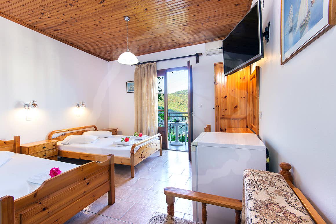 Cazare confortabilă în Panagia Thassos, aproape de Golden Beach, camere și apartament complet echipate, ideală pentru familii și cupluri, acces rapid la servicii locale.
