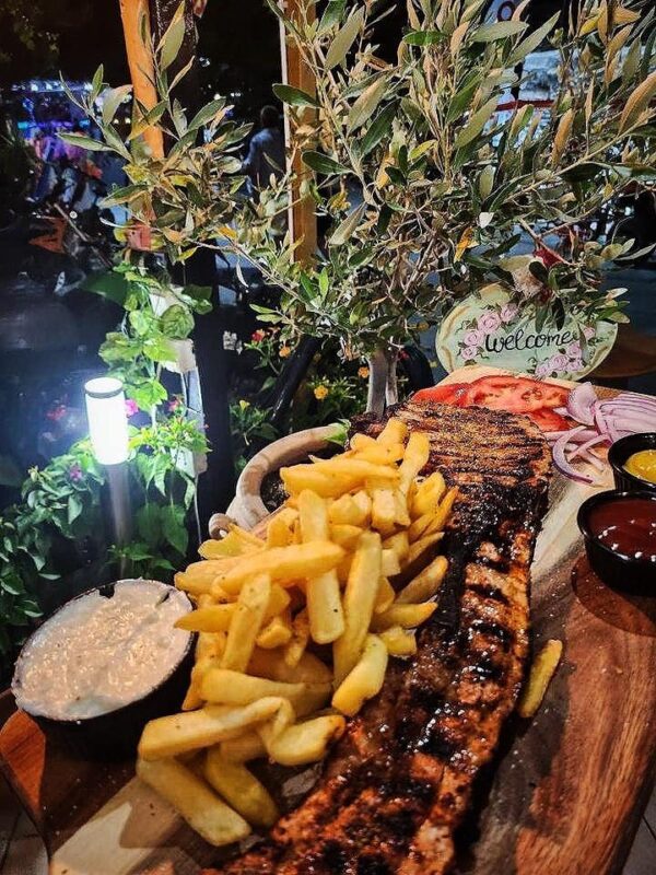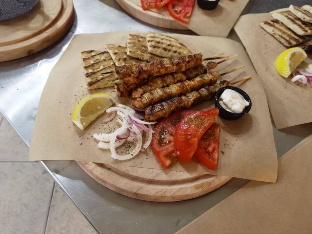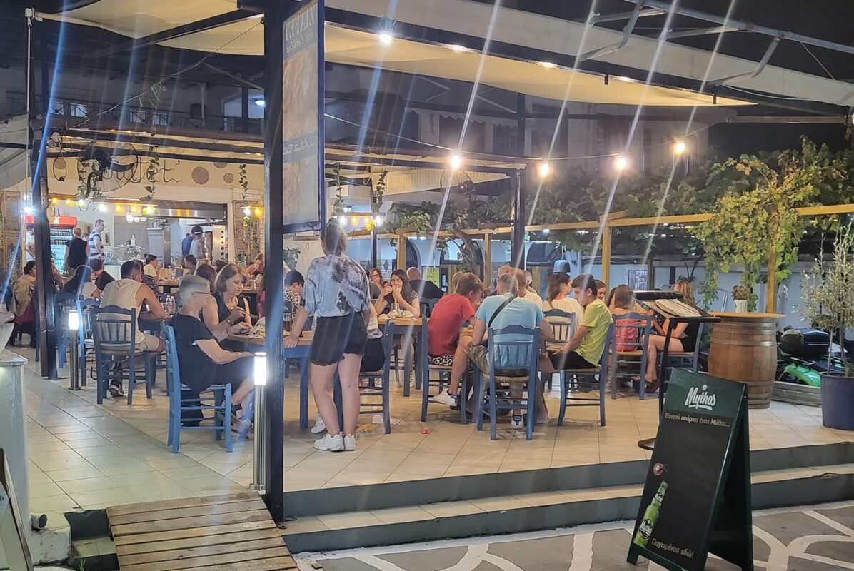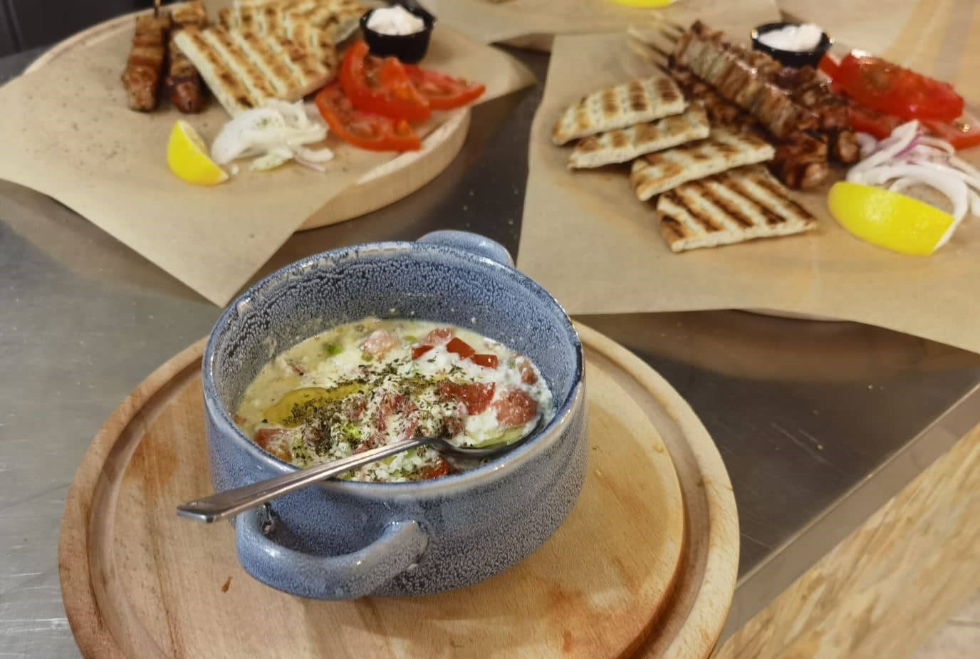 Bucurați-vă de autenticitatea și diversitatea preparatelor grecești la terasa Ziafet Grill, Gyros & More, în centrul stațiunii Skala Potamia