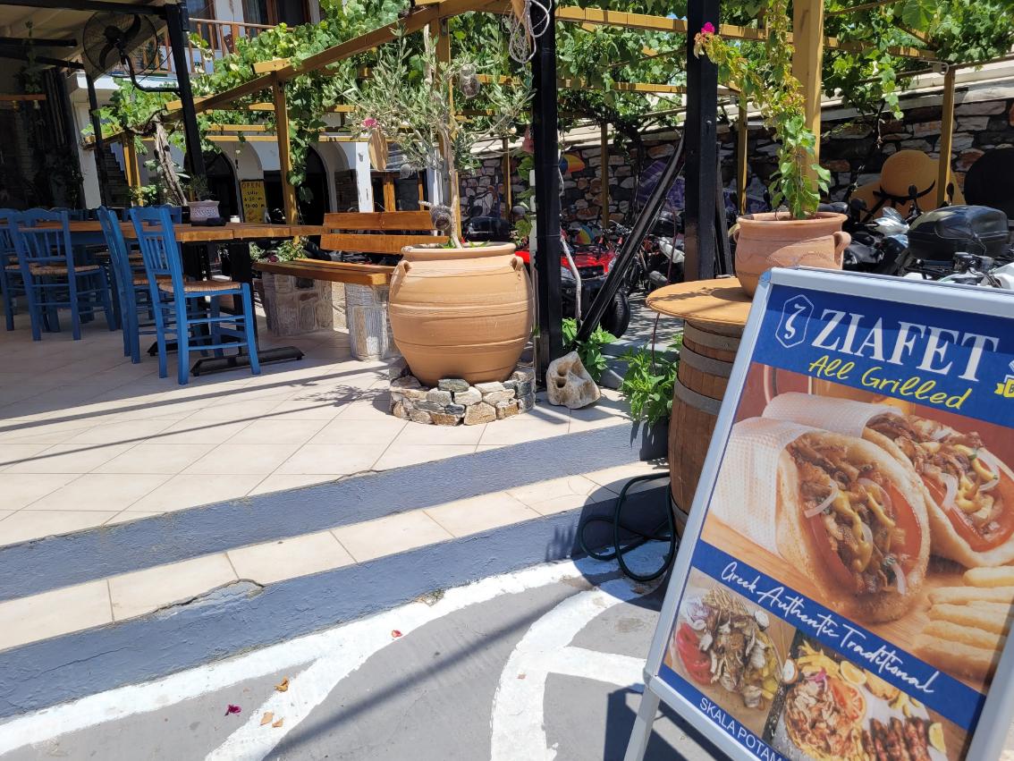 Ziafet Grill, Gyros & More este un nou local, situat în centrul stațiunii Skala Potamia, chiar în fața bisericii Sfântul Nicolae, pe strada care coboară din șoseaua principala, spre mare.